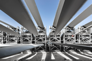 Komplet løsning til intern transport og opbevaring af vindmøllevinger.